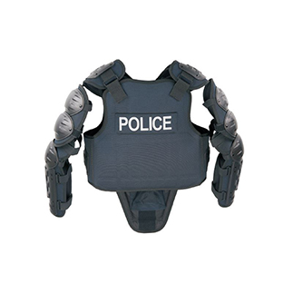 人體工程學設計,給身體的胸背部、肩部、胳膊、手腕、大腿、小腿和足部以保護。可以防暴力襲擊、手抓和尖銳物穿刺。由可調解雌雄帶連接各個部位,容易穿著和脫下。防護面積大,結構精巧,各部位連接合理,通風、散熱。